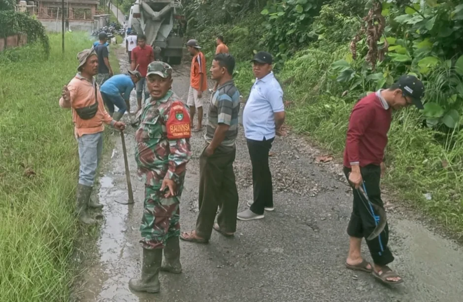 Merespons kondisi itu, masyarakat bersama perangkat kelurahan melakukan gotong royong untuk menambal jalan menggunakan semen beton. Kegiatan swadaya tersebut dilaksanakan pada Minggu (16/11/2025) dan berlangsung dengan penuh semangat.