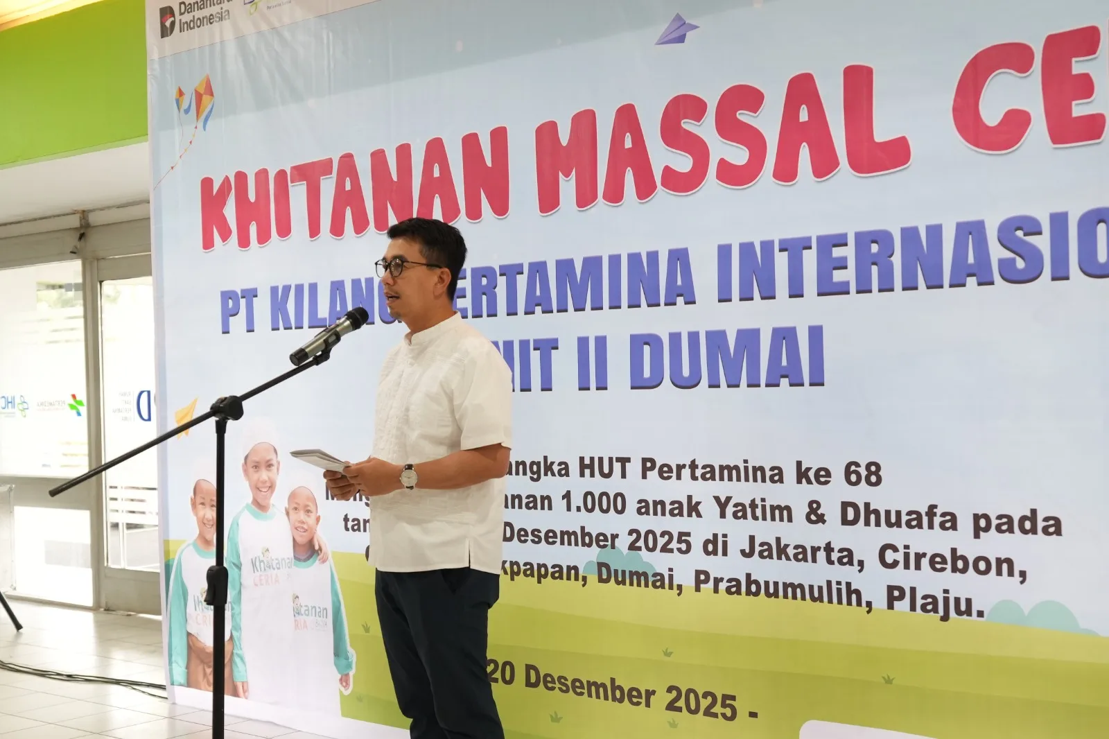 “Dalam rangka HUT ke-68 Pertamina, khitanan massal ceria digelar pada 20–28 Desember 2025 di sejumlah daerah seperti Jakarta, Cilacap, Cirebon, Balikpapan, Dumai, Plaju, dan Prabumulih. Khusus di Dumai, diikuti oleh 200 anak dari berbagai kelurahan,” jelasnya.