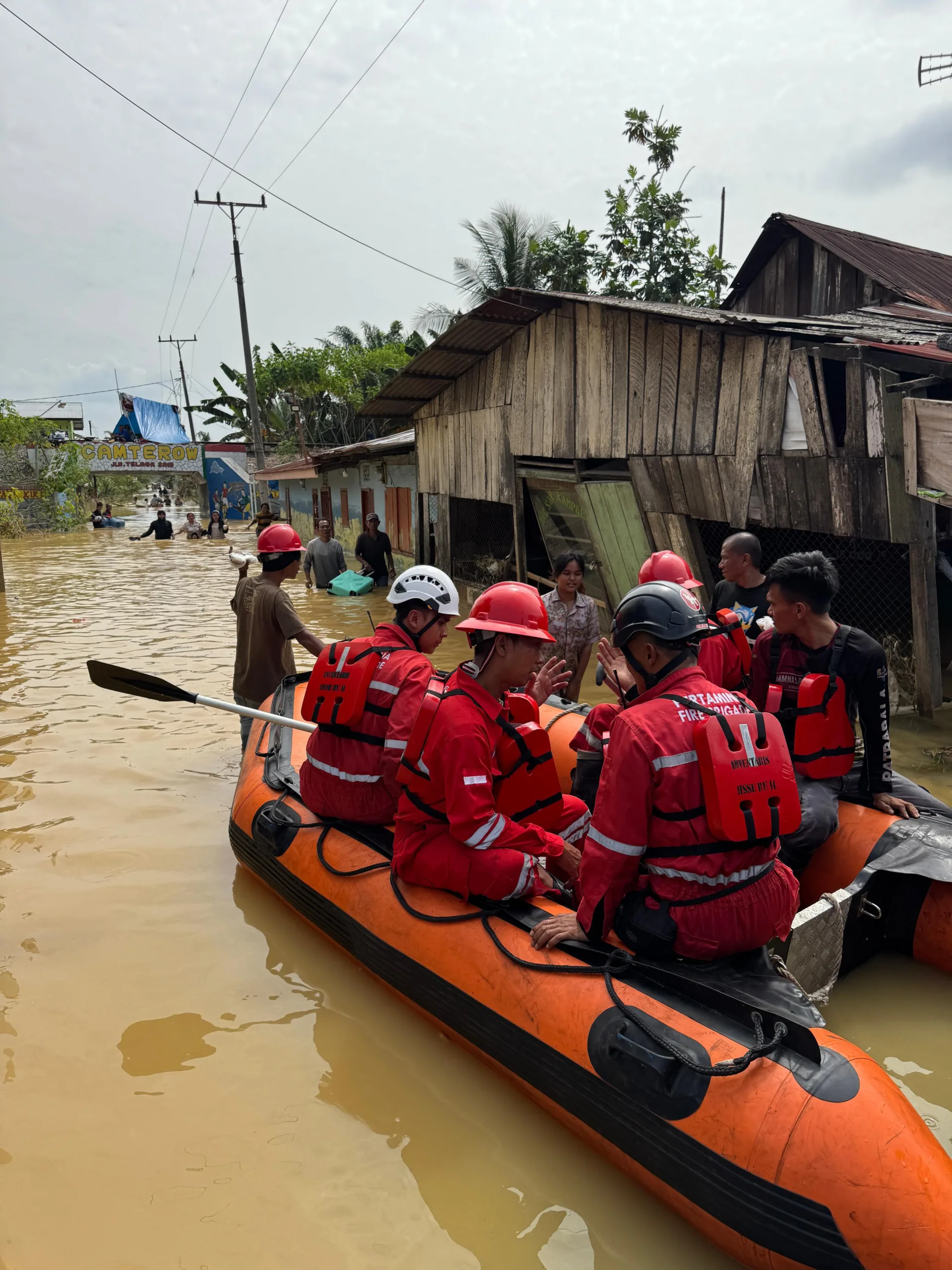 Selain fokus pada pengungsian internal, tim Pertamina juga membantu evakuasi warga dari kawasan yang terendam tinggi. Evakuasi dilakukan menggunakan perahu karet secara berulang dari permukiman ke lokasi aman.
