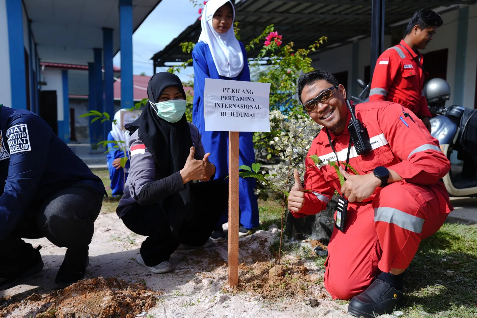 DUMAI (MDC) — Dalam rangka memperingati Hari Pohon Sedunia, PT Kilang Pertamina Internasional (PT KPI) Refinery Unit II Dumai kembali menunjukkan komitmen terhadap pelestarian lingkungan dengan berpartisipasi dalam aksi penanaman pohon serentak di halaman SMPN 20 Dumai, Kelurahan Mundam, Kecamatan Medang Kampai, Jumat (21/11/2025).
