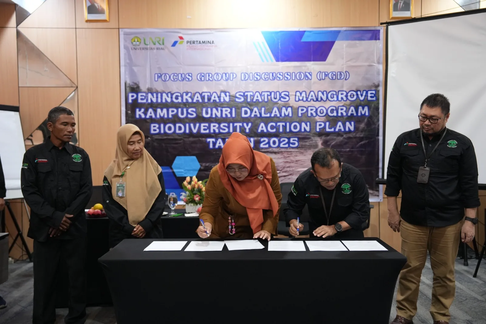 DUMAI (MDC) — PT Kilang Pertamina Internasional (PT KPI) melalui R&P Project Sumatera berkolaborasi dengan Universitas Riau (Unri) menggelar Focus Group Discussion (FGD) bersama para pemangku kepentingan di Kota Dumai dan Provinsi Riau untuk membahas pengembangan kawasan konservasi mangrove di Kampus Unri Purnama Dumai menjadi “Mangrove Eco-Edu Park”.