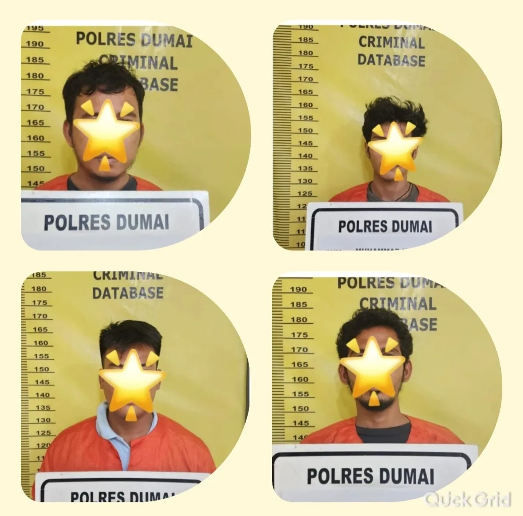 DUMAI (MDC) — Empat pria diamankan saat patroli rutin Tim RAGA setelah kedapatan menyimpan narkotika jenis sabu. Pengungkapan ini dilakukan jajaran Polsek Sungai Sembilan pada Jumat (13/02/2026) sekitar pukul 01.30 WIB di Jalan Raya Lubuk Gaung, Kelurahan Lubuk Gaung, Kecamatan Sungai Sembilan.