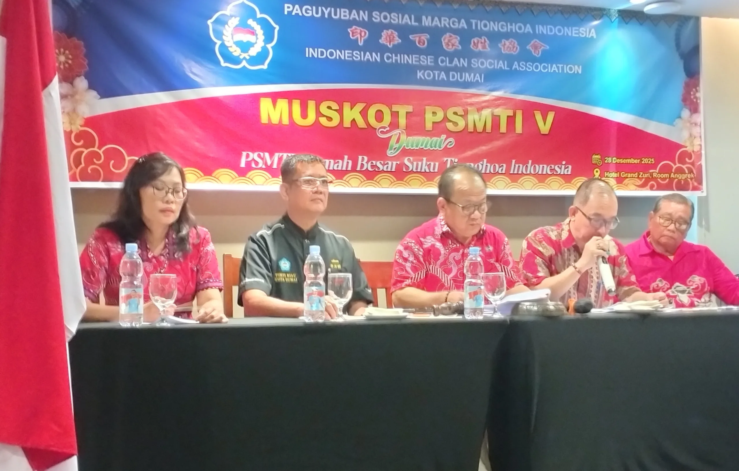 DUMAI (MDC) – Paguyuban Sosial Marga Tionghoa Indonesia (PSMTI) Kota Dumai resmi menetapkan kepemimpinan baru melalui mekanisme organisasi dalam Musyawarah Kota (Muskot) V yang digelar pada Ahad (28/12/2025) di Grand Zuri Hotel Dumai.