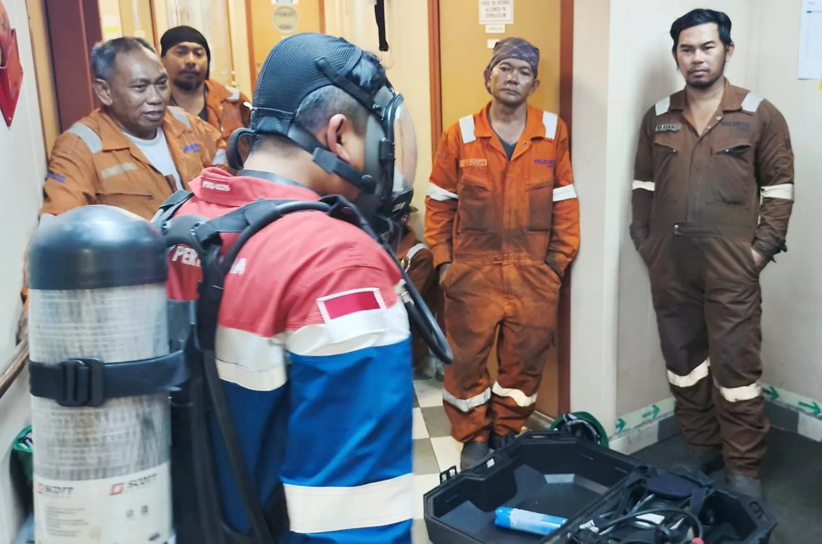 Sebagai bagian dari komitmen keselamatan kerja, Pertamina Drilling tidak hanya menjalankan layanan operasional H2S, tetapi juga menyelenggarakan pelatihan Self Contained Breathing Apparatus (SCBA) bagi tim rescue, khususnya Marine Crew yang terlibat langsung dalam aktivitas offshore. Pelatihan ini bertujuan meningkatkan kesiapsiagaan personel dalam menghadapi kondisi darurat di lapangan.