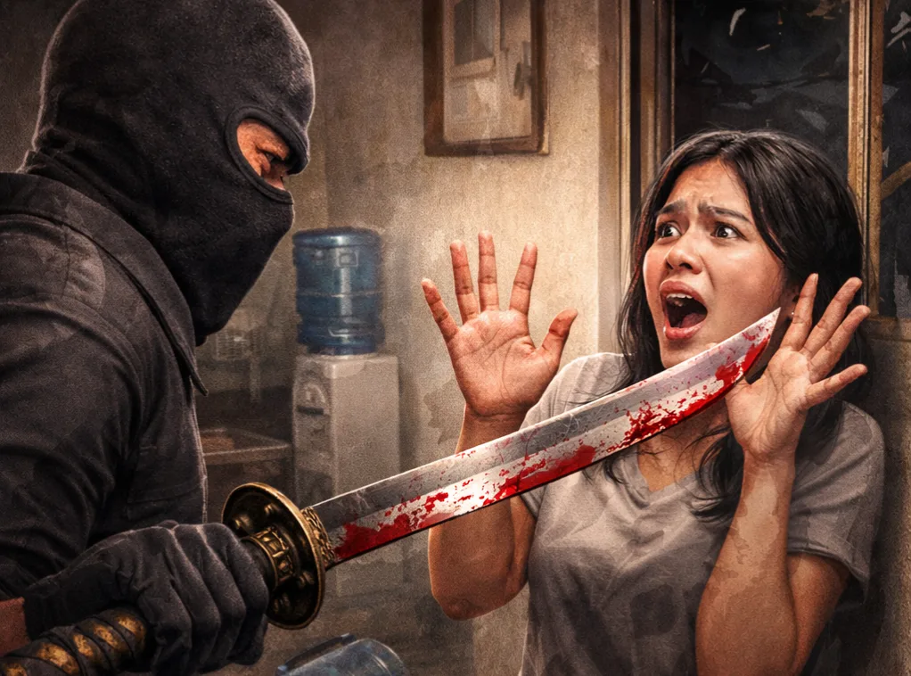 Dalam aksinya, pelaku mengarahkan senjata tajam ke arah korban sambil melontarkan ancaman.