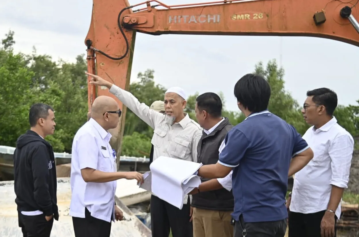DUMAI (MDC) – Umtuk memastikan proyek penanggulangan banjir pada segmen 1 di bantaran Sungai Dumai berjalan lancar, Wali Kota Dumai H. Paisal meninjau langsung pengerjaan proyek tersebut Rabu, (22/10/2025) bersama Kepala Dinas PU Dumai, Riau Satrya Alamsyah, dan Kepala Bidang Sumber Daya Air, Wan Rieko Candra.