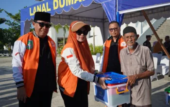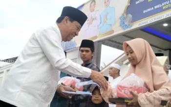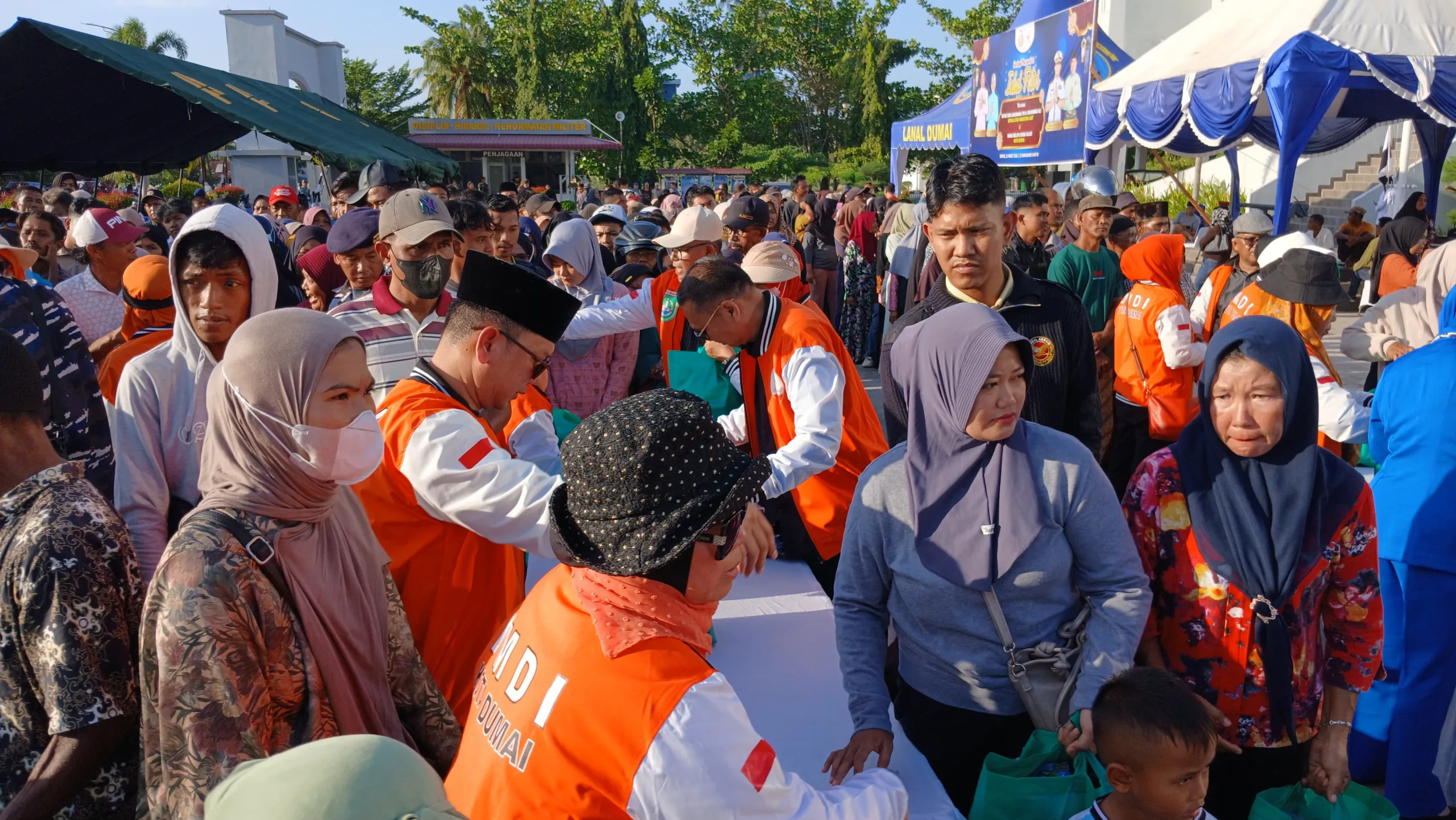 DUMAI (MDC) – Dunia Melayu Dunia Islam (DMDI) Kota Dumai menyalurkan 1.000 paket Idul Fitri bagi warga kurang mampu, Jumat (13/03/2026) di Markas Komando TNI Angkatan Laut (Lanal) Dumai. Penyerahan dihari Komandan Lanal Dumai Kolonel Laut (P) Abdul Haris beserta jajaran Mako Lanal Dumai dan ibu-ibu Jalasenastri Lanal Dumai serta pengurus DMDI Kota Dumai.