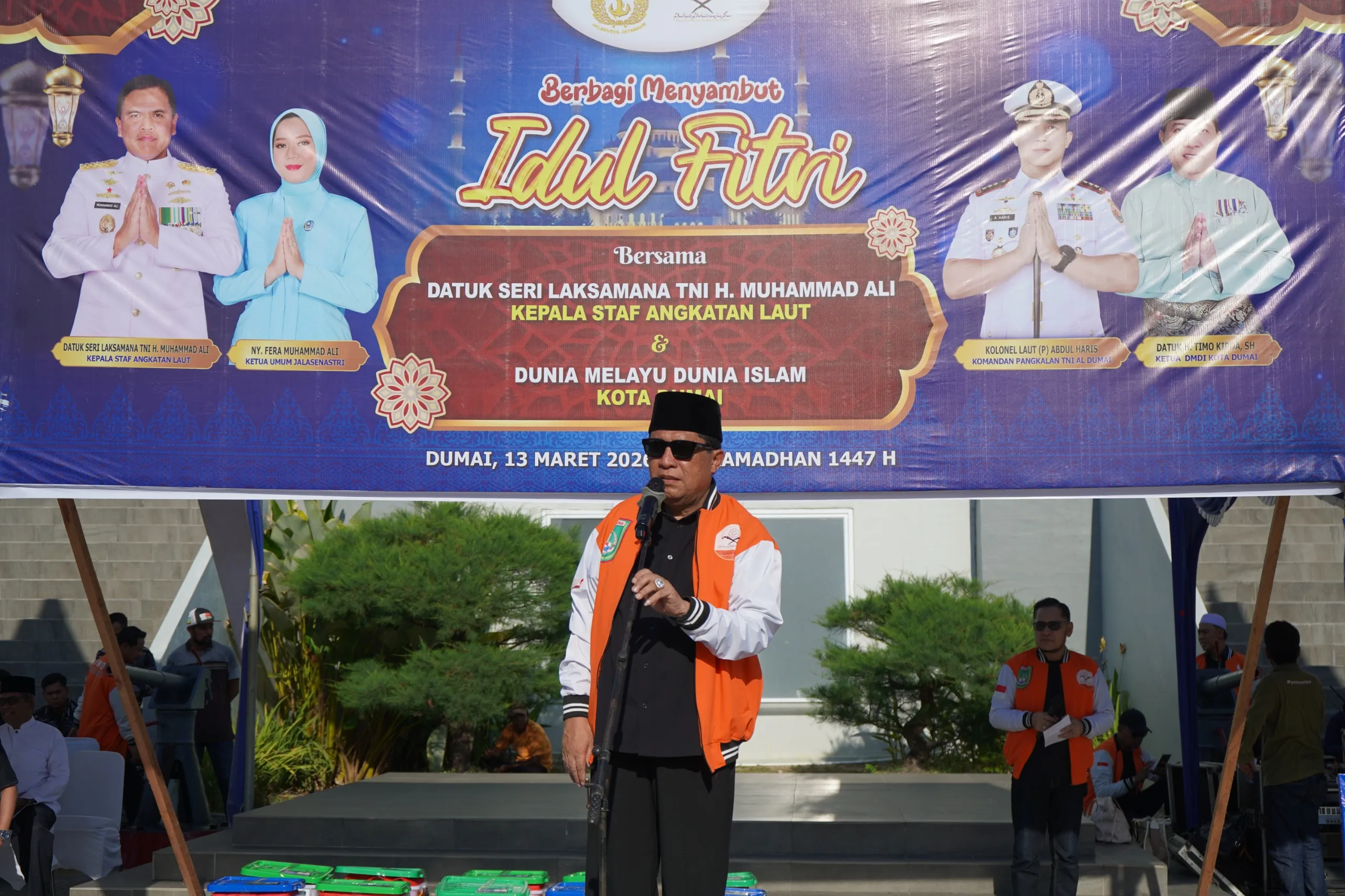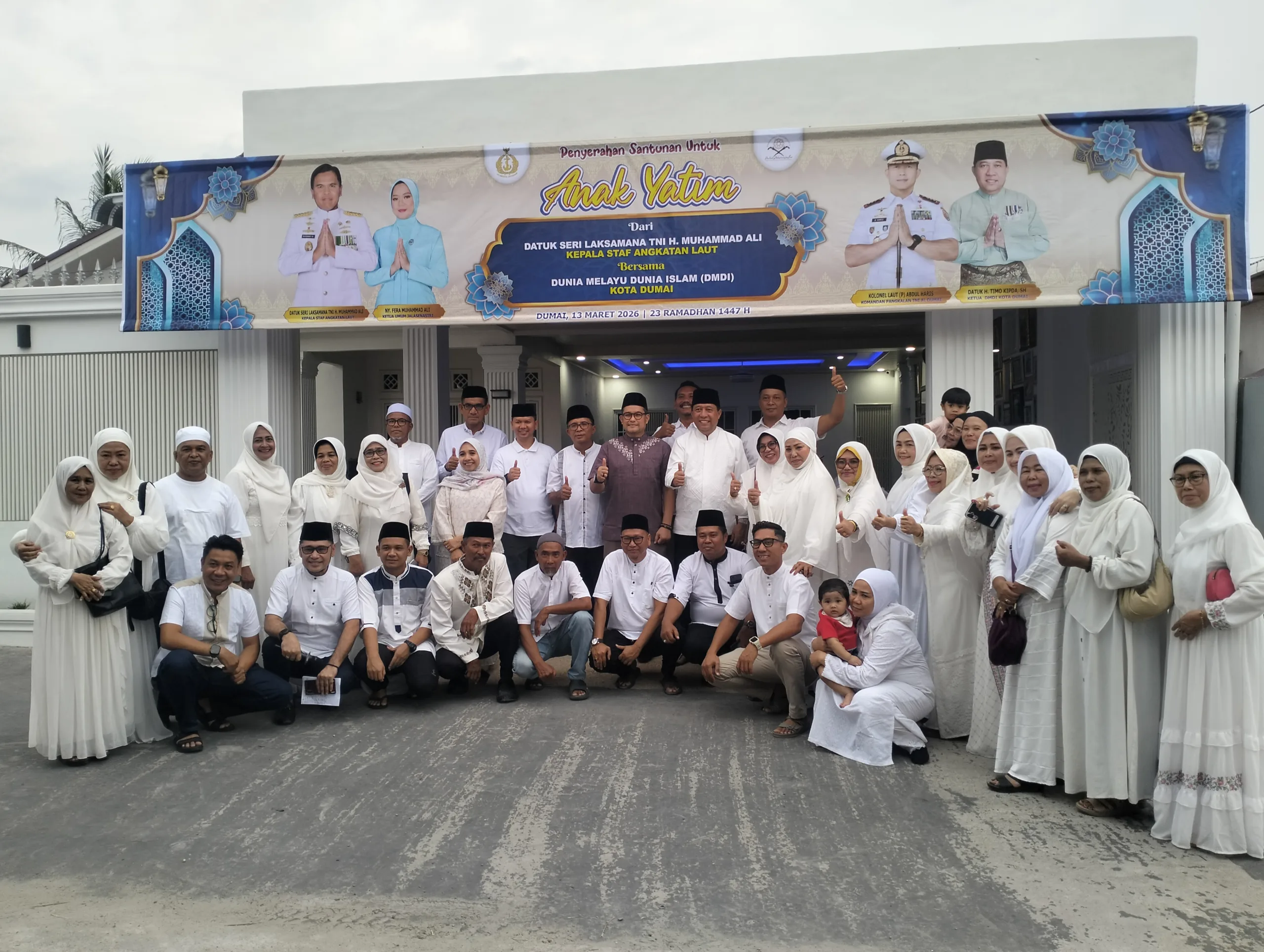 DUMAI (MDC) – Dunia Melayu Dunia Islam (DMDI) Kota Dumai menyalurkan 1.000 paket Idul Fitri bagi warga kurang mampu, Jumat (13/03/2026) di Markas Komando TNI Angkatan Laut (Lanal) Dumai. Penyerahan dihari Komandan Lanal Dumai Kolonel Laut (P) Abdul Haris beserta jajaran Mako Lanal Dumai dan ibu-ibu Jalasenastri Lanal Dumai serta pengurus DMDI Kota Dumai.