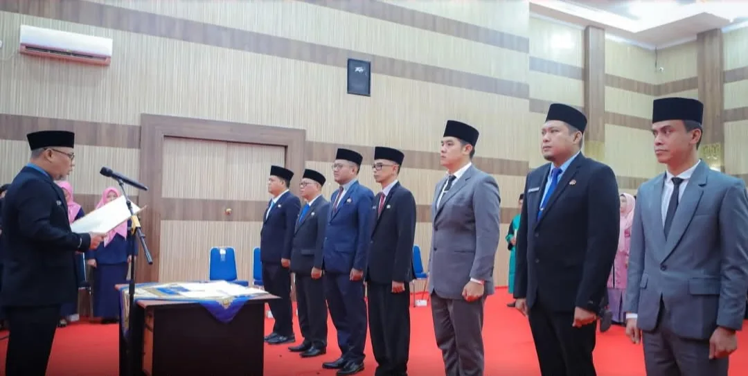 DUMAI (MDC) – Sekretaris Daerah (Sekda) Kota Dumai, Fahmi Rizal, melantik dan mengambil sumpah jabatan enam Pejabat Pimpinan Tinggi Pratama (JPTP) di lingkungan Pemerintah Kota Dumai, Jumat (19/12/2025) pagi. Pelantikan berlangsung di Ruang Kamboja, Lantai IV Kantor Wali Kota Dumai.