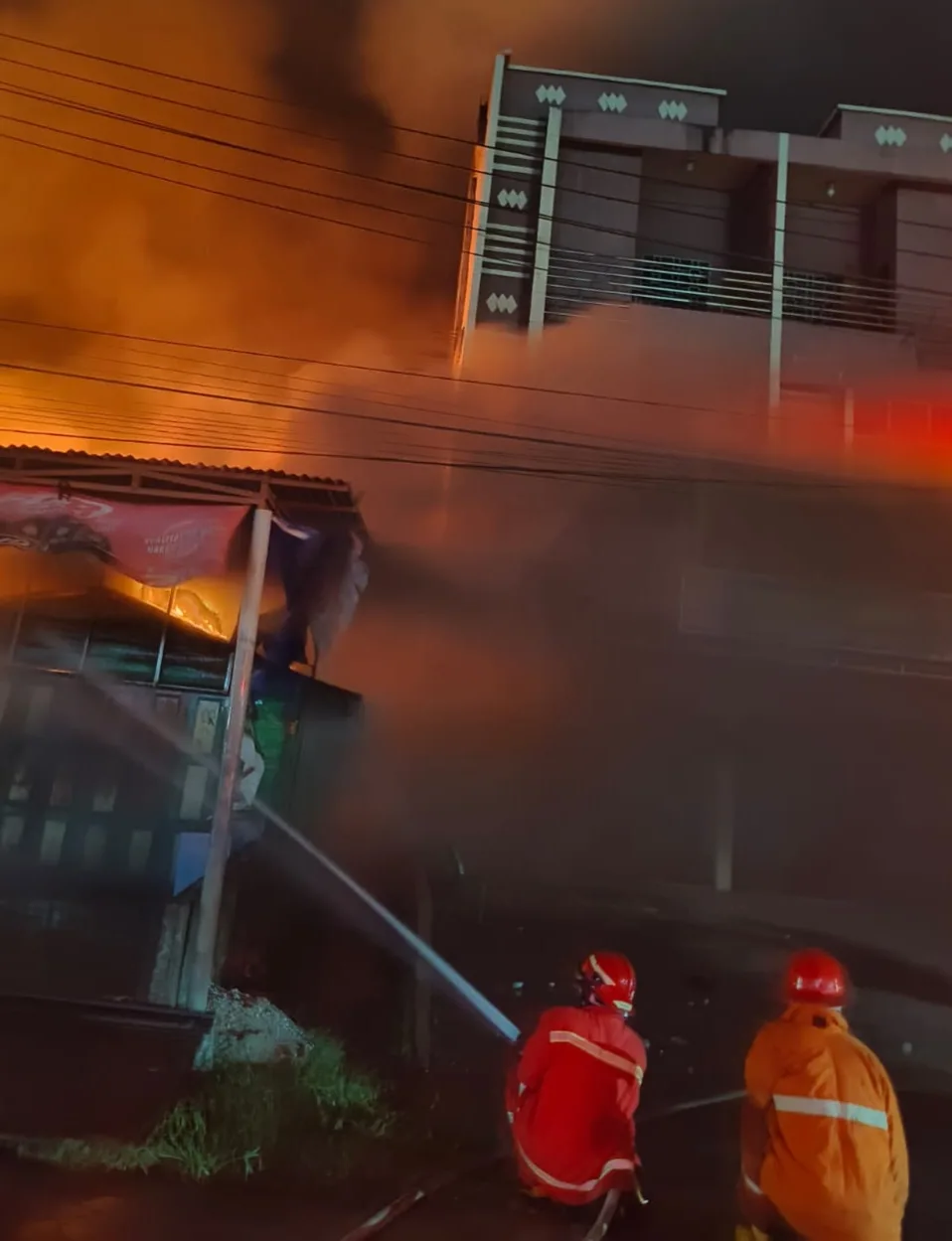 Menurutnya, ganasnya kobaran api bahkan sempat membakar kabel tegangan tinggi yang melintang di atas bangunan bengkel.