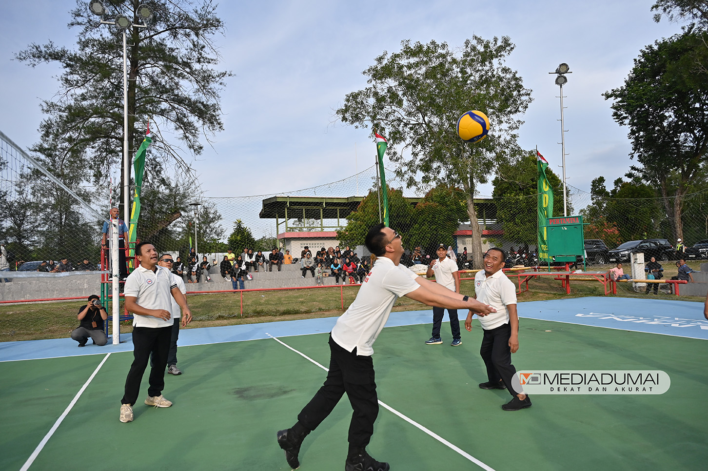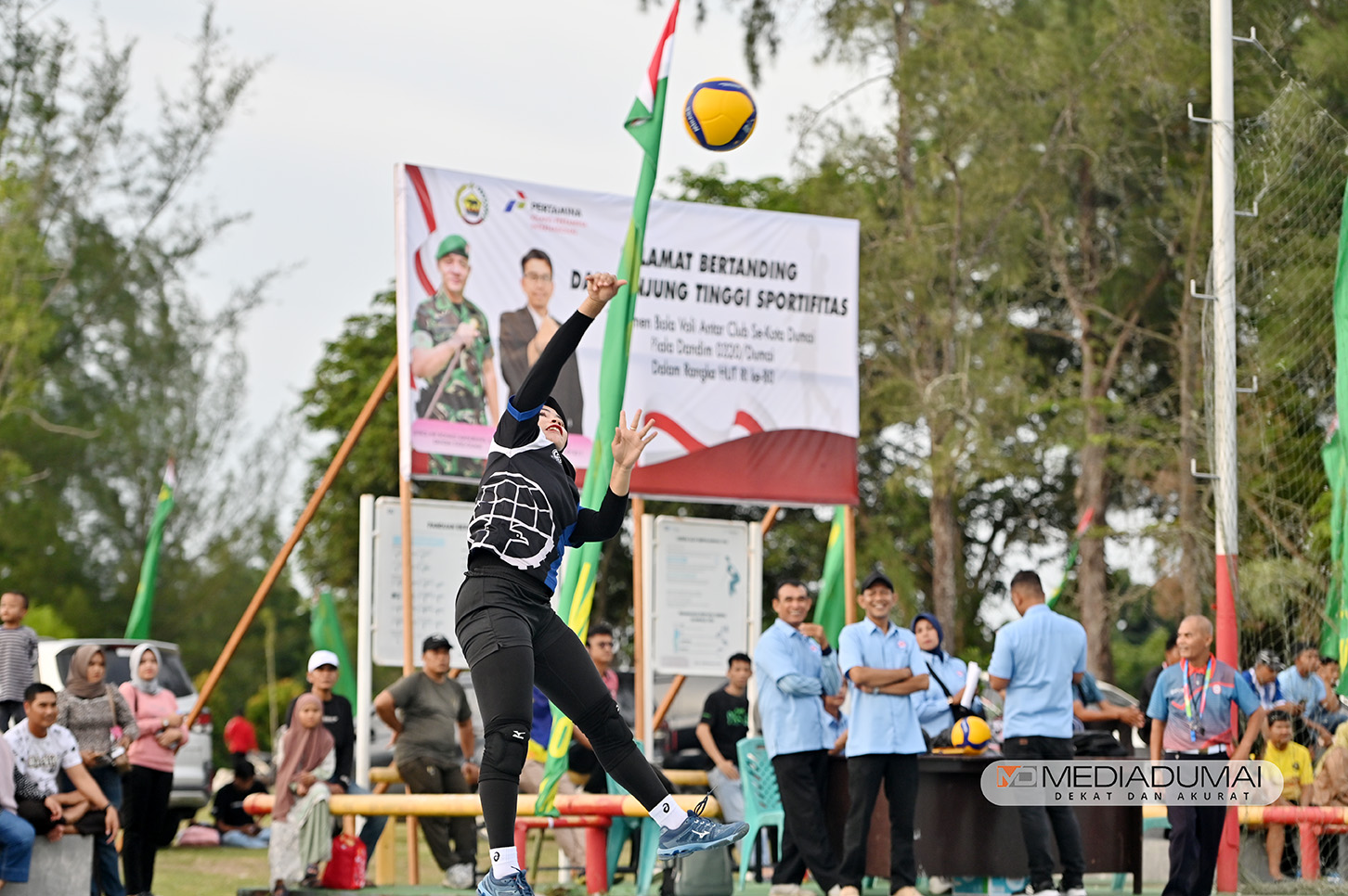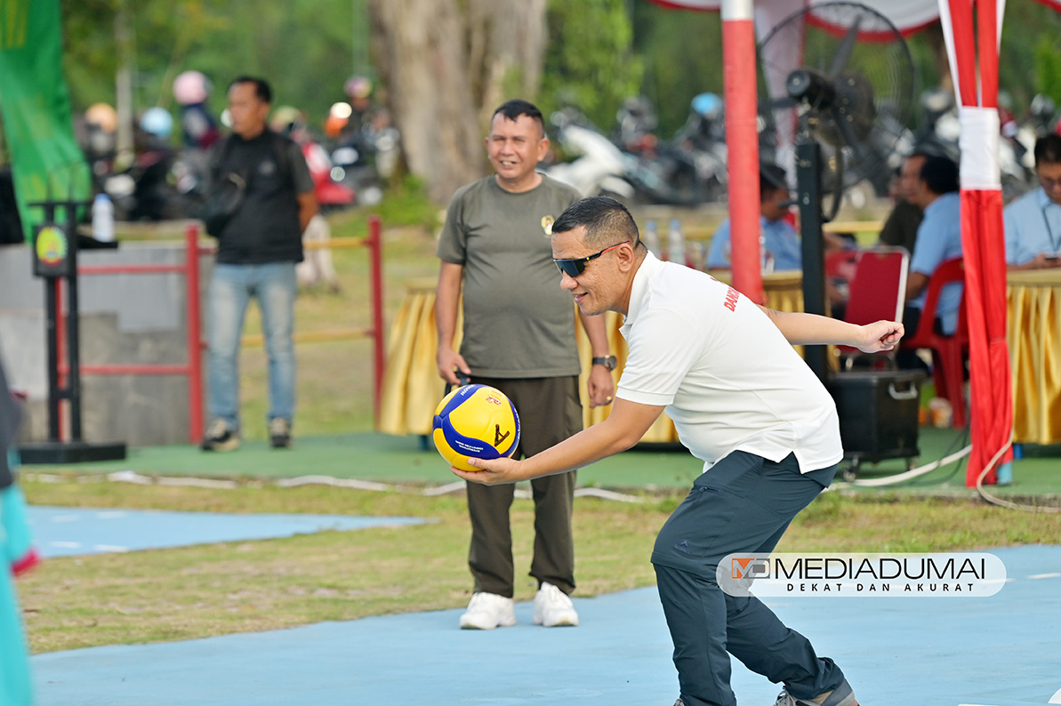 Komandan Kodim 0320/Dumai Letkol Inf. Ronald Manurung menyampaikan turnamen bola voli sekota Dumai ini dalam rangka memeriahkan perayaan HUT RI ke – 80.
